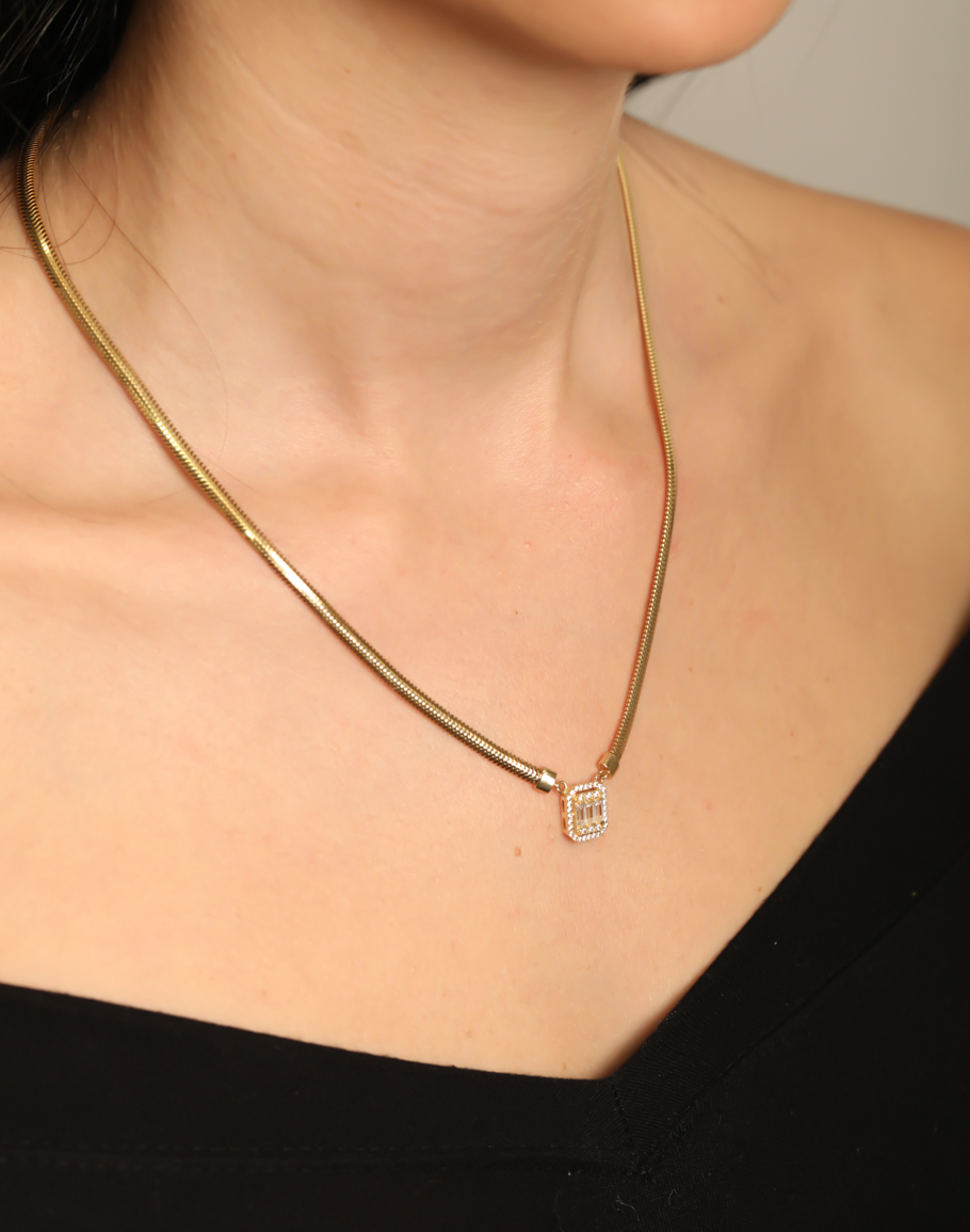 BAGET TAŞLI BALIK SIRTI KOLYE