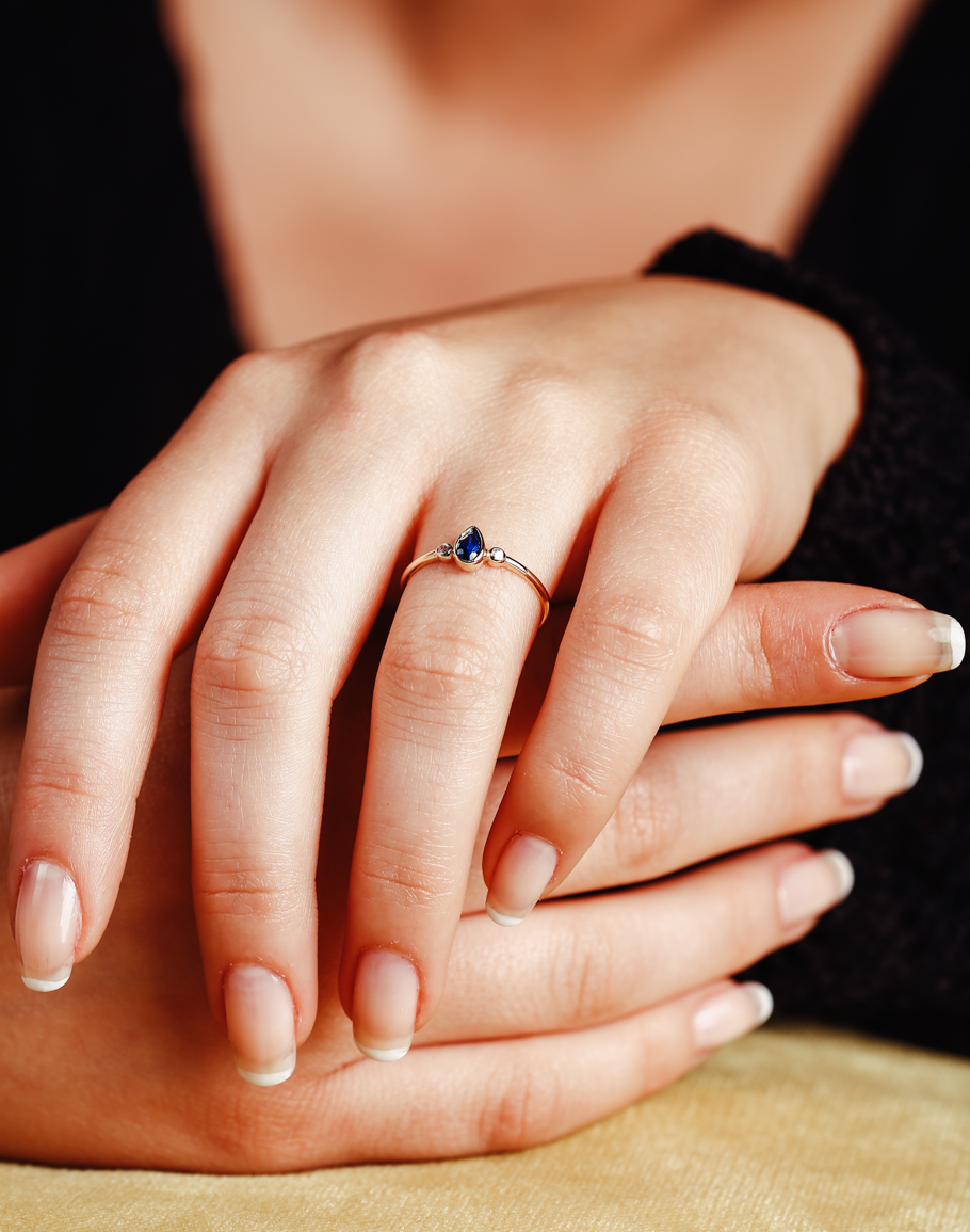 SAFİR TAŞLI DAMLA YÜZÜK
